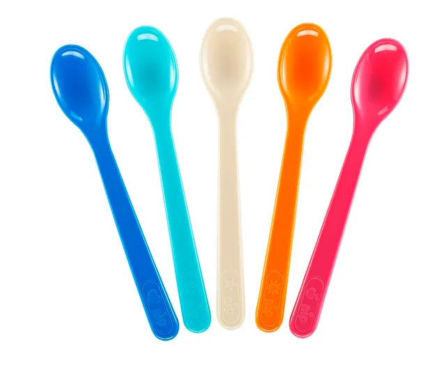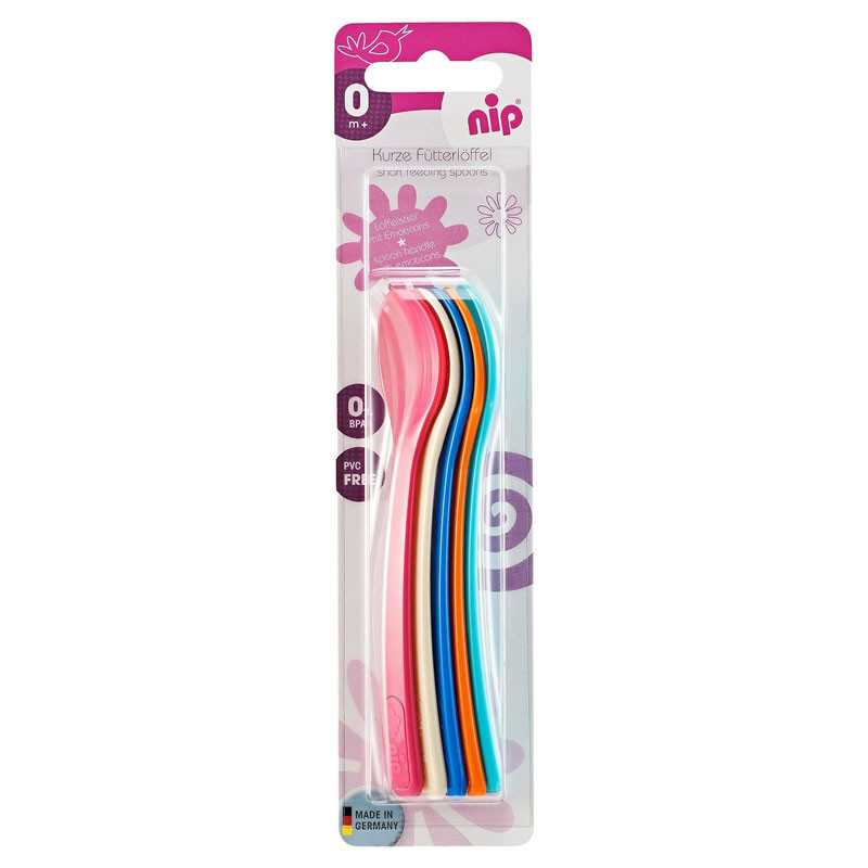 The nip feeding spoons have an ergonomically shaped handle which babies and adults alike can grasp easily and securely. The soft, bendy spoon handle allows for easy food intake. The slim spoon fits perfectly in babys small mouth and the soft, round spoon dish is gentle for babys mouth while also protecting babys sensitive palate. The nip spoons are odourless and can easily be cleaned in the dishwasher. The spoons are made special thanks to their tiny cute symbols on the spoon handles: apple, mushroom, star, heart, paw, cloud and sun., Complies with EN 14372 standard and is tested by independent labs., , From families for families.